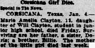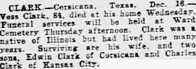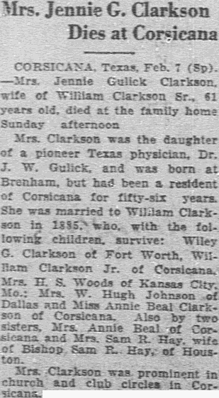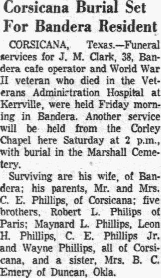 Clements was reared in Mildred community, leaving in 1917 for West Texas. Later he resided at Emhouse and Mabank before moving to Seagoville, Dallas county, several years ago.