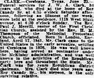 buried in Calvary Hill Cemetery, Dallas, Texas; s/o John Clement