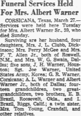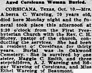 FORMER CORSICANA WOMAN DIED HOUSTON BURIAL IN