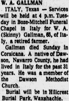 Burial will be in the Oakwood Cemetery in Corsicana.