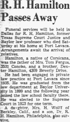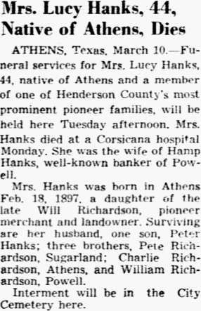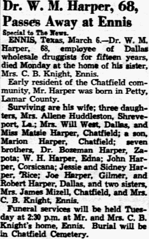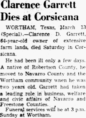 Dallas; a sister Mrs. Jim Bonner, Corsicana, and other relatives.
