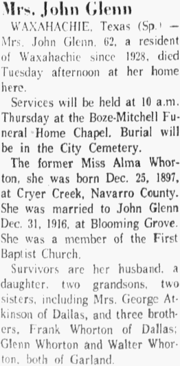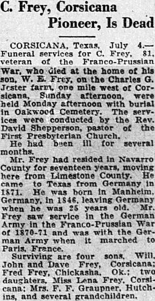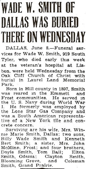 He was well known in Corsicana where he often visited, his mother being