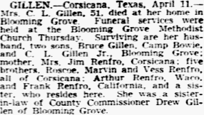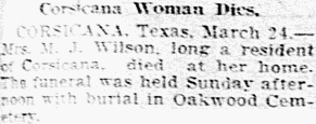 The deceased had been a resident in Corsicana for 38 years. She is
