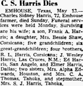 Corsicana; three brothers, J. B. Harvard of Stanton, Hayden Harvard of
