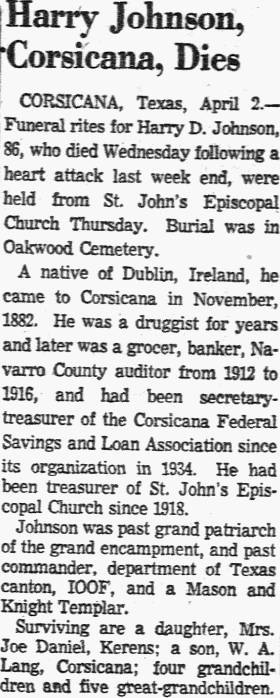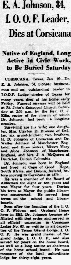 Corsicana. He was a member of the IOOF and a Shriner.