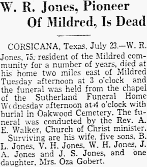July 14, 1948 George L. Keller Dies CORSICANA, Texas, July 14. - George L. Keller, 81, died here Tuesday morning. Surviving are two sons, Clyde Keller, Roane, and Zeal Keller, Alvarado; a sister, Mrs. Willie Oliver, Lubbock; sixteen grandchildren and five great-grandchildren. Notes: