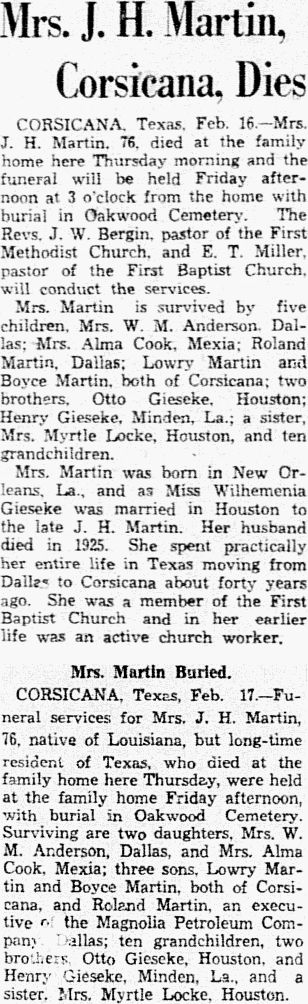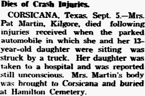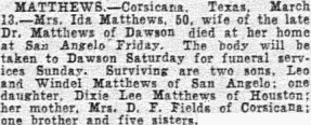 Others here for the funeral were Mrs. Belle Maddox, Texas City; Mr. and
