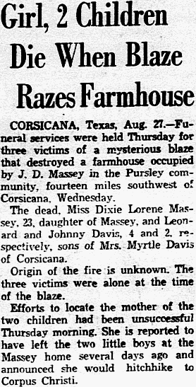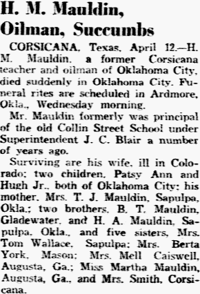 Ark.; Bob Mayo, Corsicana; two sisters, Mrs. Emma Henderson, Corsicana;