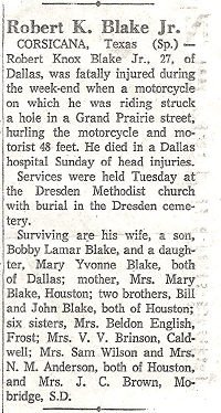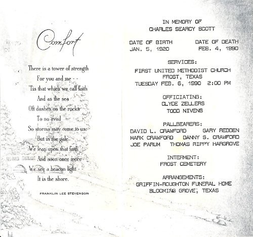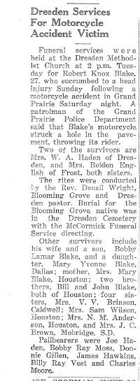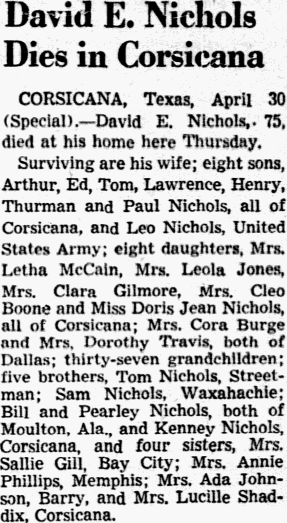 after a long illness. He was sixty-three and a native of Navarro County. Funeral arrangements have not been completed but burial will be in Kerens. Survivors
