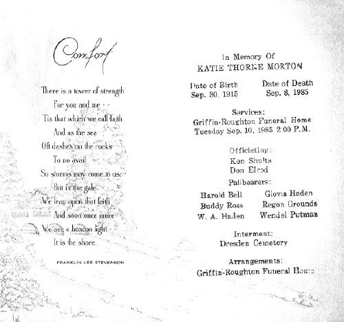 Pallbearers were John Anderson, Dare Mabry, Geddes Noble, C. A. Vaughn,