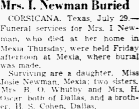 Texas. Jan. 9. - Funeral services were held here with burial in Kerens