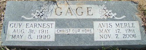 May 17, 1911 - Nov 7, 2006 Avis Merle Gage, resident of Ft. Lauderdale, Florida and formerly of Dallas, Texas, passed away Tuesday November 7, 2006 at Florida Medical Center in Ft. Lauderdale, Florida at the age of 95. Graveside services will be held on Friday, November 10, 2006 at 2:00 p.m. at Rose Hill Cemetery in Blooming Grove, Texas. Visitation will be Friday from 10:00 a.m. - 1:00 p.m. at Griffin-Roughton Funeral Home in Corsicana, Texas. Survivors include her son and daughter-in-law: Warren Austin Gage and his wife Betty of Ft. Lauderdale, Florida. Grandchildren: Leah Grace Gage and Nathaniel Micah Gage. Sister: D. Mildred Grinstead of Balch Springs, Tx. Nieces and nephews: Wanda and Gary Orphey of Mt. Pleasent, Tx., Gayle Gresham of Balch Springs, Tx., Wanda and Lowell Ray Halbert of Amarillo, Tx., and Genetha Thomas of Corsicana, Texas. She was preceded in death by her husband: Guy Ernest Gage in 1990 and a sister: Verda Leah Grinstead in 2001.