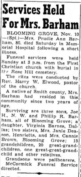 great-grandchildren; sisters Clara Morgan [McGraw] of Corsicana and Geneva Bonner of