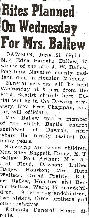 Services were at 2 p.m. Saturday at the Wilgo Baptist Church in Corsicana for