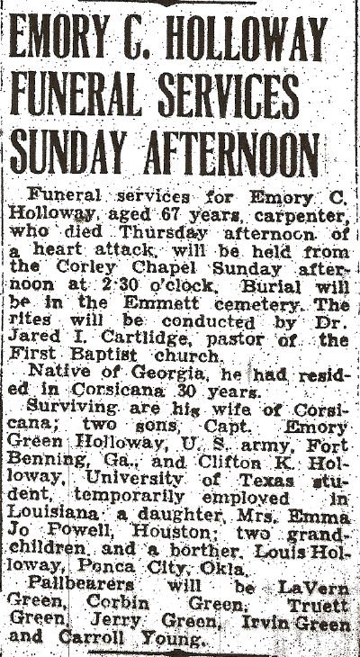 Highway 19. A resident of Tool and a native of Kerens, he was a retired captain in the U.S. Army, serving in World War II,