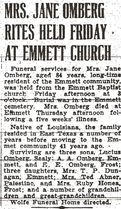 great-grandchildren and one sister, Mrs. Laura Lewis of Streetman.