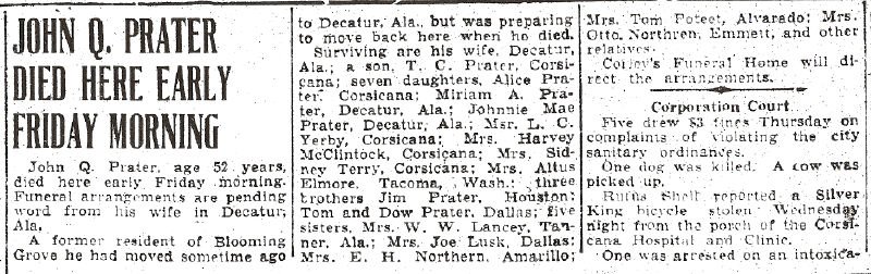 Corsicana; and by one granddaughter.
