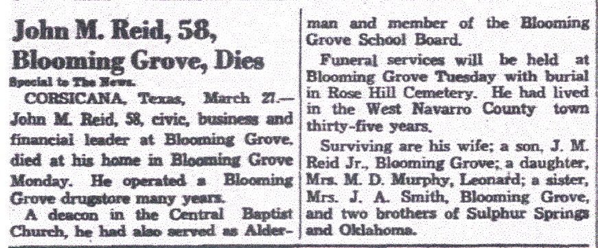 He is survived by one sister, Mrs. Charlie Smith, Blooming Grove; a