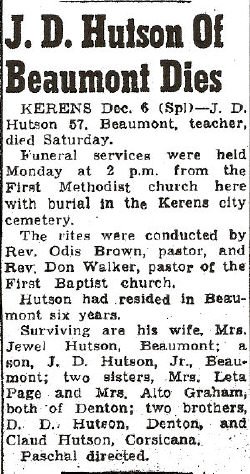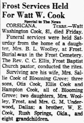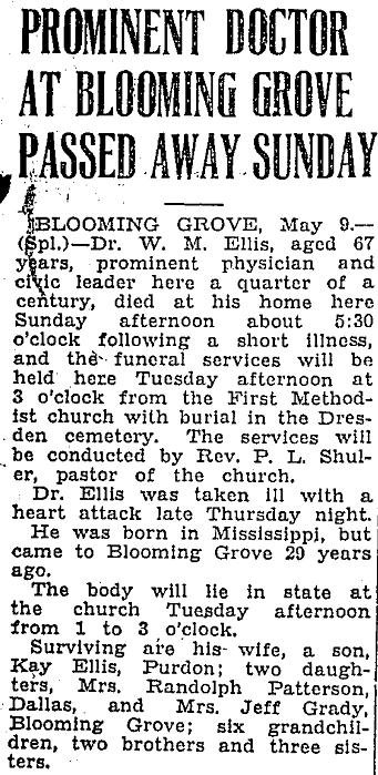 one sister, Mrs. Carrie Smith, Blooming Grove, Texas. Body to be forwarded to