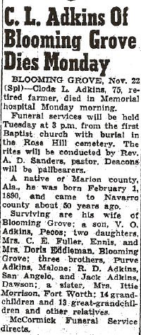 Jan. 21, 1916 (Blooming Grove, TX) - June 30, 1997 (Corsicana, TX)