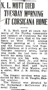 Services were held at Corley Funeral Chapel in Corsicana