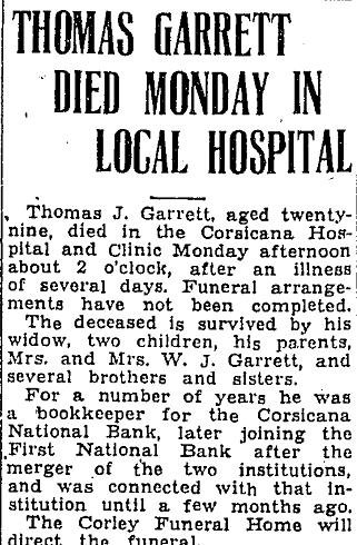 daughter, Mrs. W.A. Hand in Fort Worth. Services held from the Christian Church