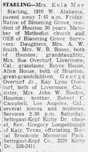 Mar 4, 1900 - Apr 19, 1956 Corsicanan Dies While Visiting At Blooming Grove BLOOMING