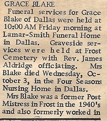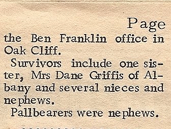 Attending the funeral from this area were Mrs. Ben Melton (Mr. Melton was ill),