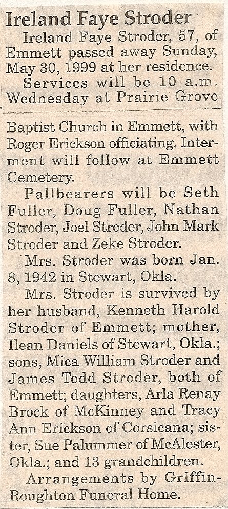 of Mansfield; grandson, Keith Denbow of Ennis; 12 great-grandchildren and