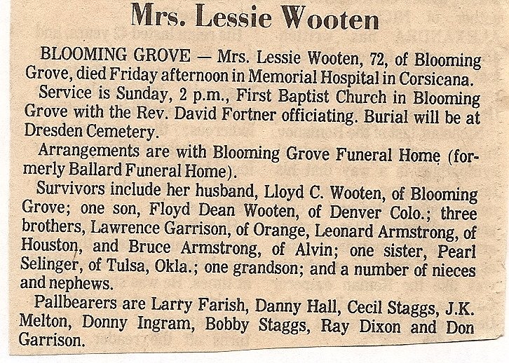 Cemetery in Corsicana under the direction of Lloyd James Funeral Home. Mrs. Ross