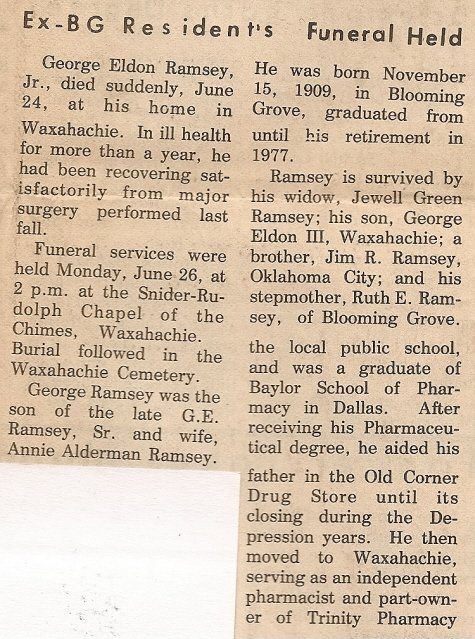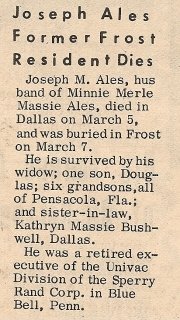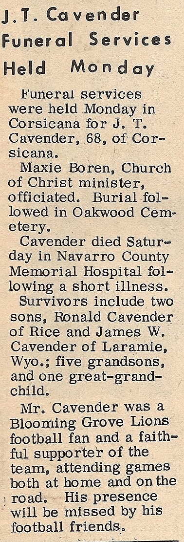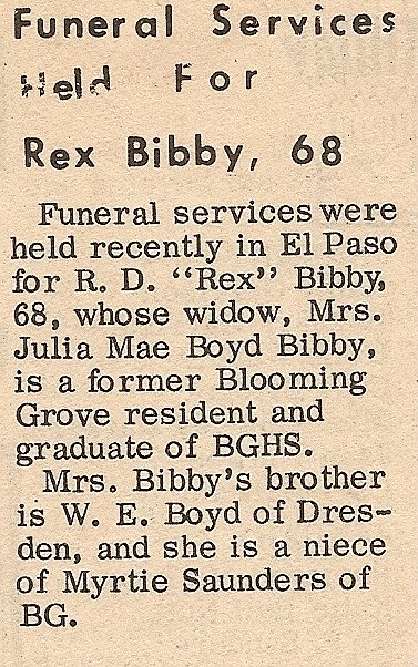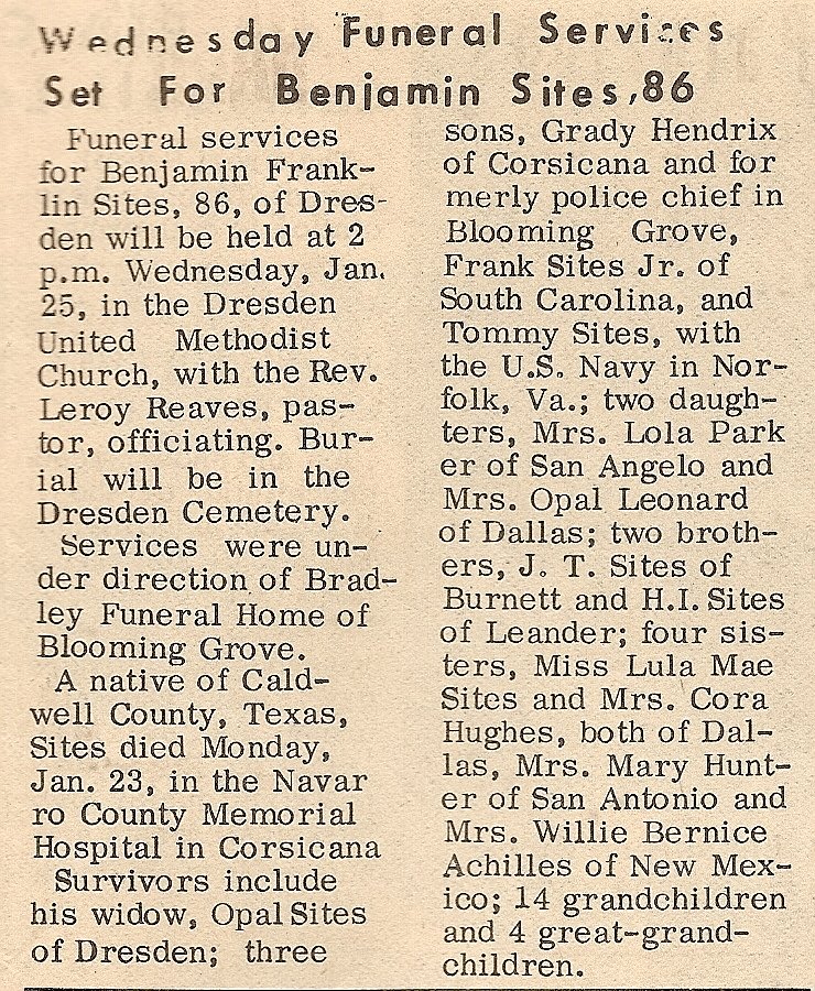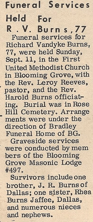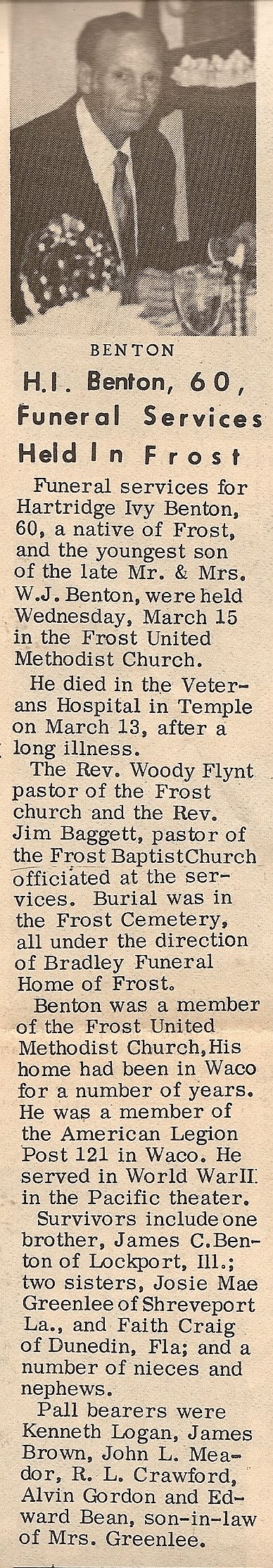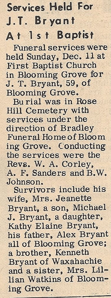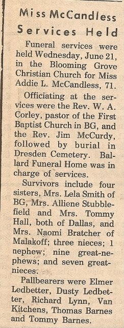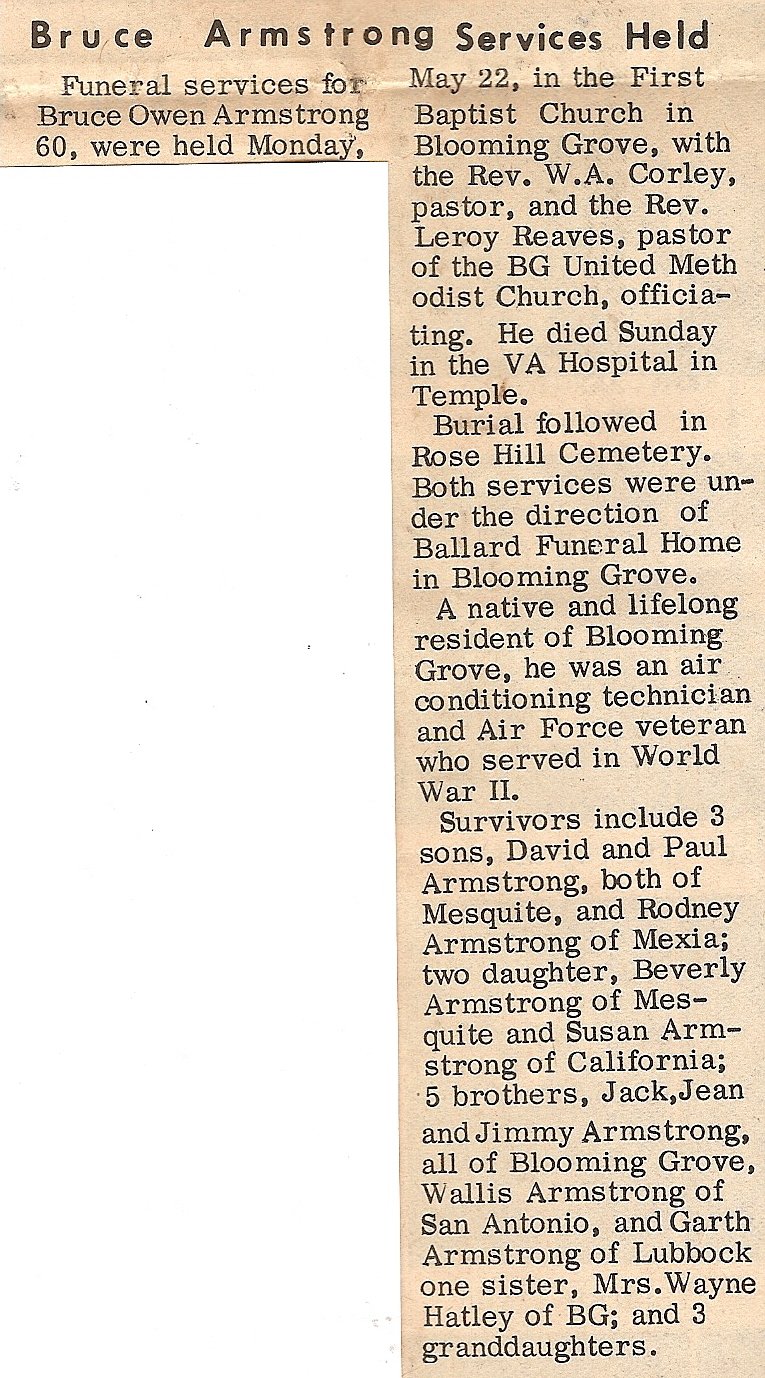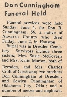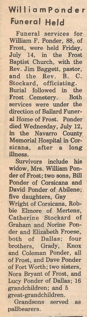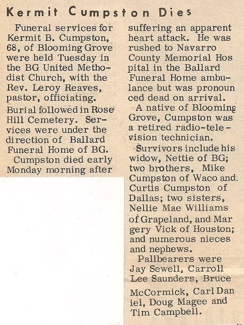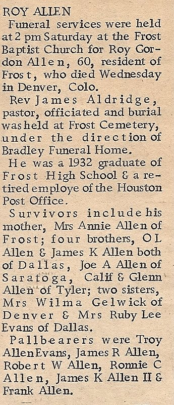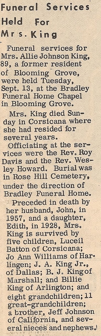 Brother; Billy Pennington of Dew, TX., Aunt; Mae Johnson of