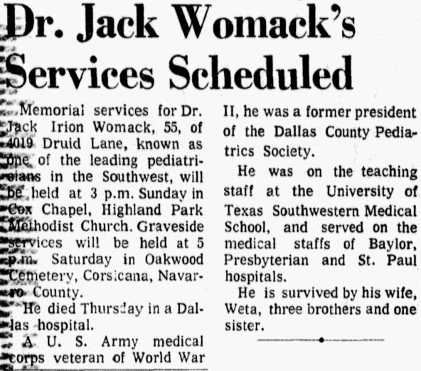 Barbara Henthorn McCraw Aston died Saturday, February 27 in Mansfield. Burial will be in the Younger Cemetery.  Services are pending.