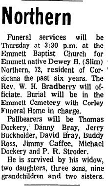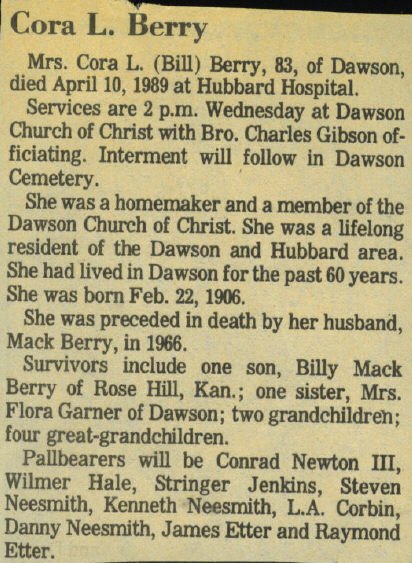 in Kerens, Texas. Local arrangements by Corley Funeral Home. |