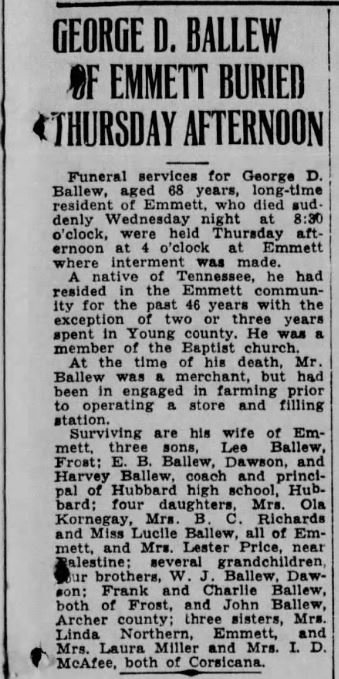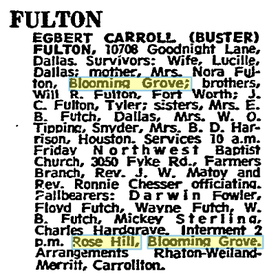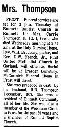 Grove-Frost area, died at the Mel-Haven Home in Corsicana at 1:30