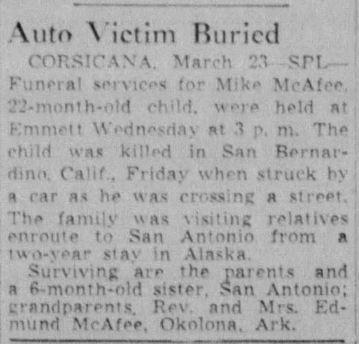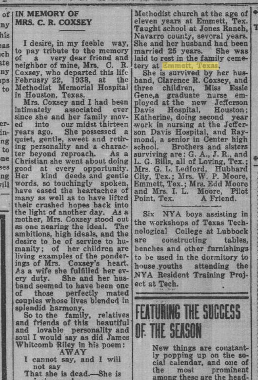 newspaperwoman, Waco; his mother, and other relatives.