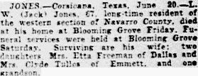 Freeman of Fort Worth; three sisters, Mrs. A. E. Smith of Quinlen,