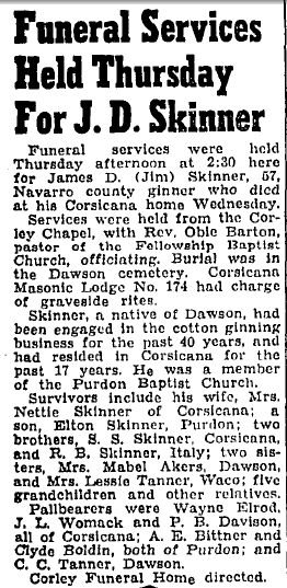 Corsicana district at the time of her death, which occurred Jan 17,