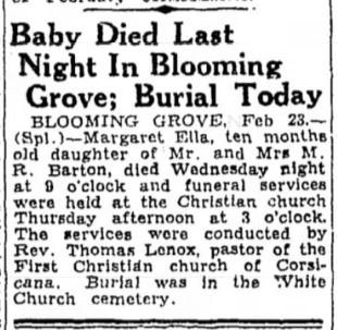 Rose Hill Cemetery in Blooming Grove. Funeral services were held Saturday at