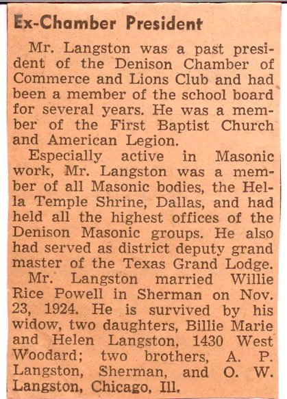 Pallbearers were S.T. Rouse, Harry Clowe, A. L. Absher, W. D.