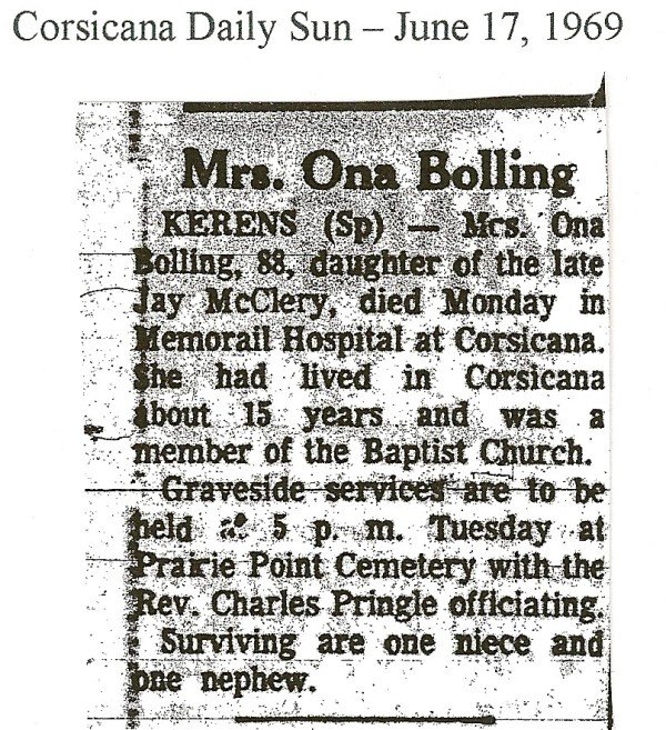 2, 2012, at her home in Blooming Grove, Texas.