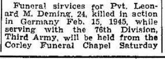Pvt L. M. Deming Killed In Action Luxembourg Area