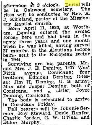 Surviving are his parents of Corsicana; four brothers, Cpt. Edmond
