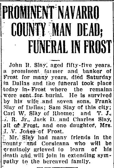 was also a former resident of Frost, Purdon, and Corsicana, a member