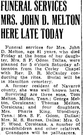 Point; and another sister who resides near Lancaster, Dallas county.