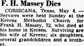 - the death certificate says buried in Kerens, Tx. but she
