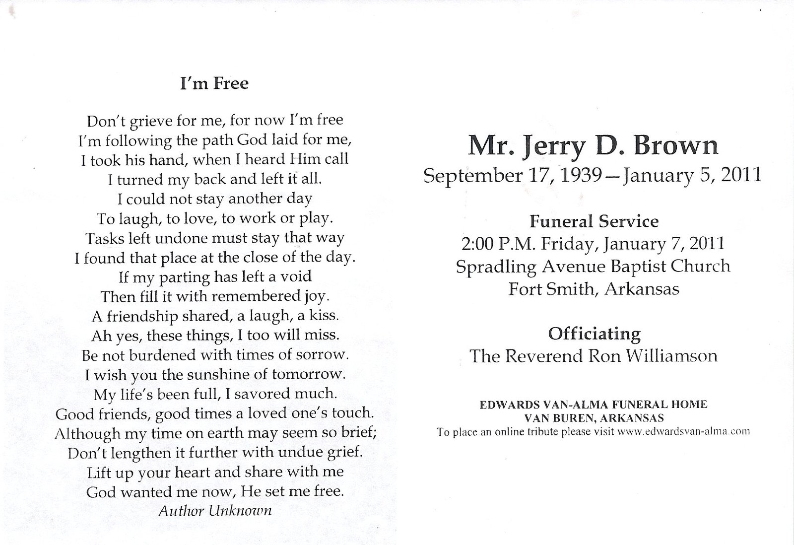 will officiate, and burial will be in
