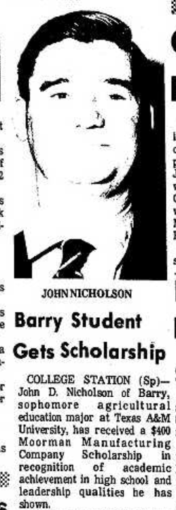 John David Nicholson, 38, of Barry died Oct. 8, 1988, at Baylor Hospital in Dallas.