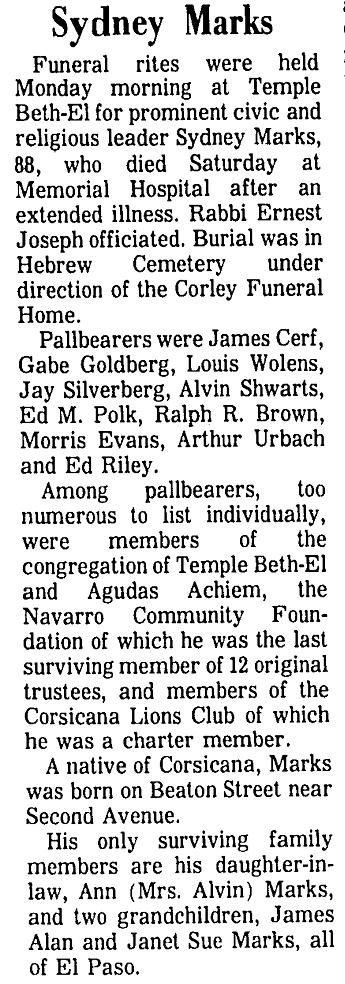 Burial will be in the Oakwood Cemetery in Corsicana. The family will