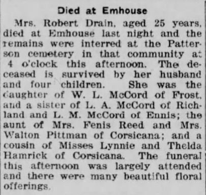 Corsicana and had lived in Dallas for many years. She was employed