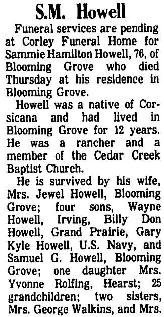 Survivors include two sisters, Mrs. Lula Westbrook of Kaufman and